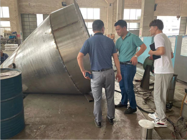 公司领导及技术总工对客户一行的到来表示欢迎,陪同客户先后参观了生产车间及设备展示区,详细介绍了锥形螺带真空干燥机的使用范围,和效果等相关知识及售后服务等情况,并且清晰的解答了客户提出的各种问题,得到了客户的认同与赞赏。